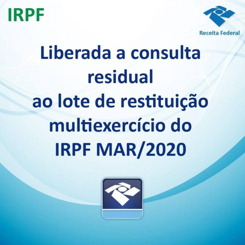 Está disponível para consulta o lote multiexercício de restituição do Imposto sobre a Renda da Pessoa Física contemplando as restituições residuais referentes aos exercícios de 2008 a 2018.