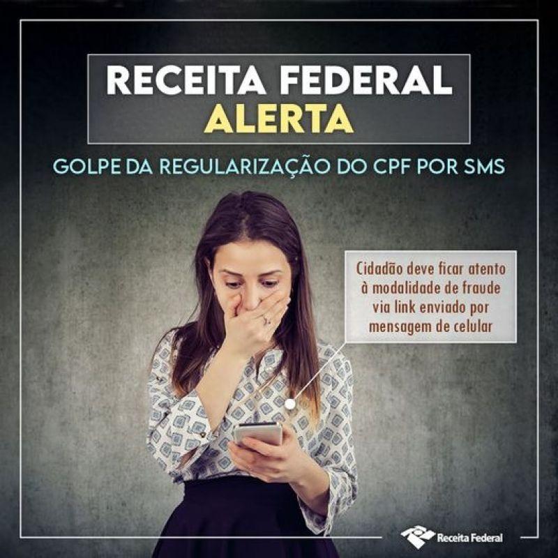 #Alerta - A Receita Federal alerta para nova tentativa de golpe com objetivo de extrair dados pessoais, bancários e fiscais das pessoas que está sendo realizada por SMS, e não somente por e-mail, como tem sido mais comum.